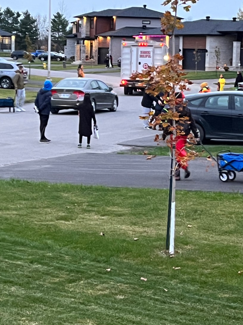 This year in Crysler we did run out of candy. And we had stocked up anticipating many trick or treaters. Our streets were full of children, some with parents standing at the road waving hello. Some kids were not even talking yet but were proudly accompanied by elaborately costumed moms and dads.