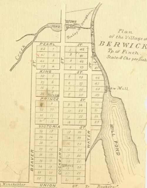 In an early atlas of Eastern Ontario[i] (1879), the authors remarked that Berwick “is evidently one of the ‘has beens’’ – meaning it had seen greater prominence in earlier times. As they go on to note: “…its present status is not imposing”. Certainly, its early history is significant for this region, but lots happened in Berwick after that atlas was published.