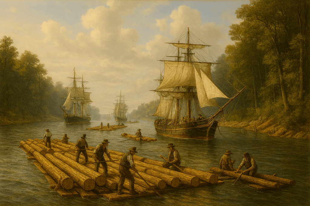 The wood was transported first to the South Nation River near Crysler and then on to the Ottawa River (near Plantagenet) enroute to Montreal. It was a long, difficult, and dangerous task, but Montreal was anxious to receive the lumber, some of which was used there in Quebec (Lower Canada), but other lumber was exported, likely to Britain. There was an insatiable appetite for Canadian lumber for boat building in Britain at that time.