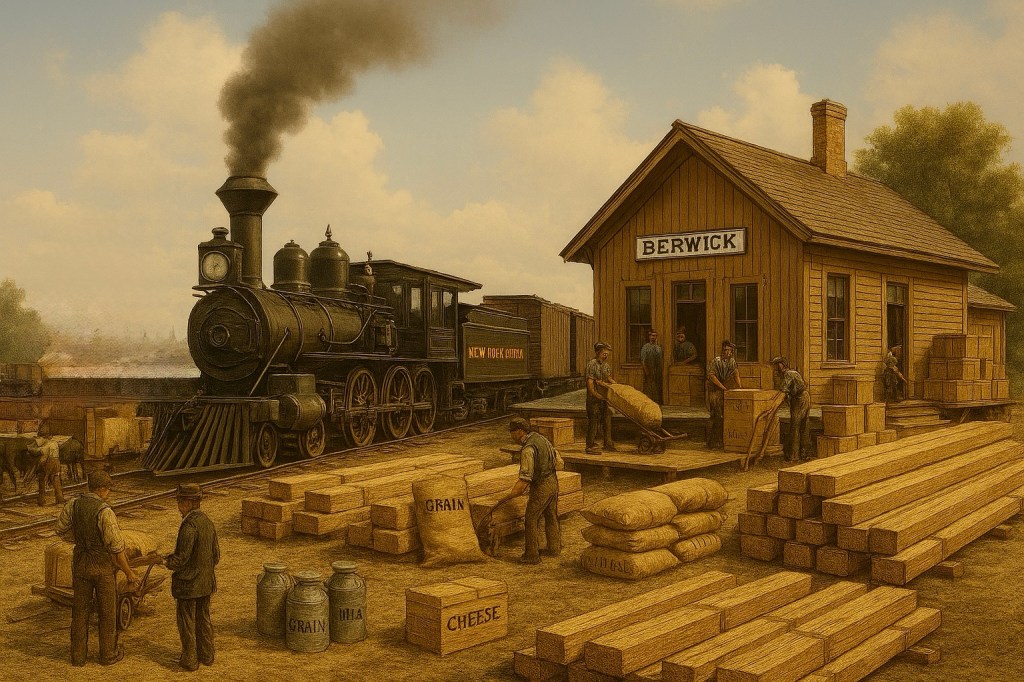 The arrival of the railway prompted a boom in the local economy. While important, the arrival of the Ottawa and New York Railway in 1897 did not have the same impact as those in other nearby locations, such as Avonmore or Newington. Berwick had a small one floor station, situated near your Union Street school.