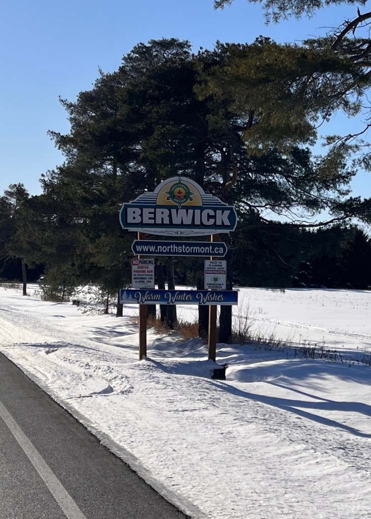 Berwick is about 45 to 50 minutes southeast of Ottawa. Today it has about 150 people. It has a long history in this area, going back to the early 1800s. It has gone through boom times and is now continuing without much growth. Most residents commute to Ottawa or work home-based as trades folk servicing nearby farms, businesses, and residences. Like so many small communities in this area, though, family linkages remain strong.