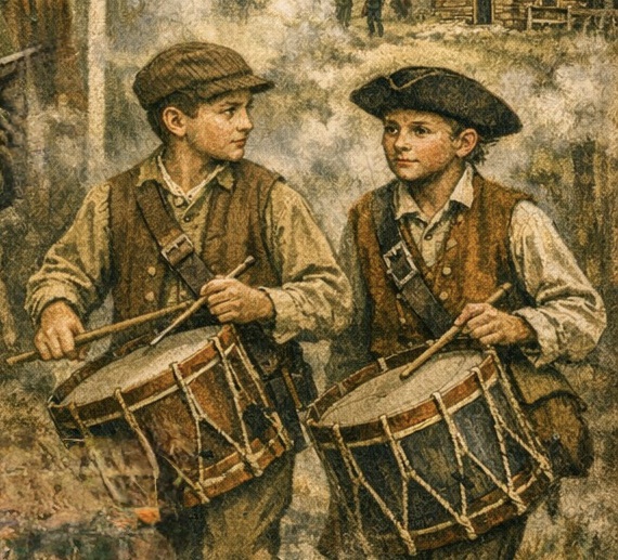 Philip signed up his sons, John (age 10 at the time) and his brother Geronomous (12) to serve as drummers for Butler’s Rangers—mere children participating in a war that would uproot their entire family.