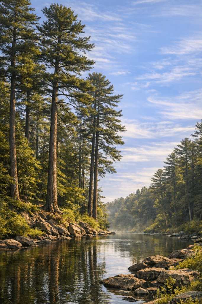 Land along the Nation River and its tributaries was perfectly suited for growing these valuable species. There were white pine trees 100-150 feet tall in that area.